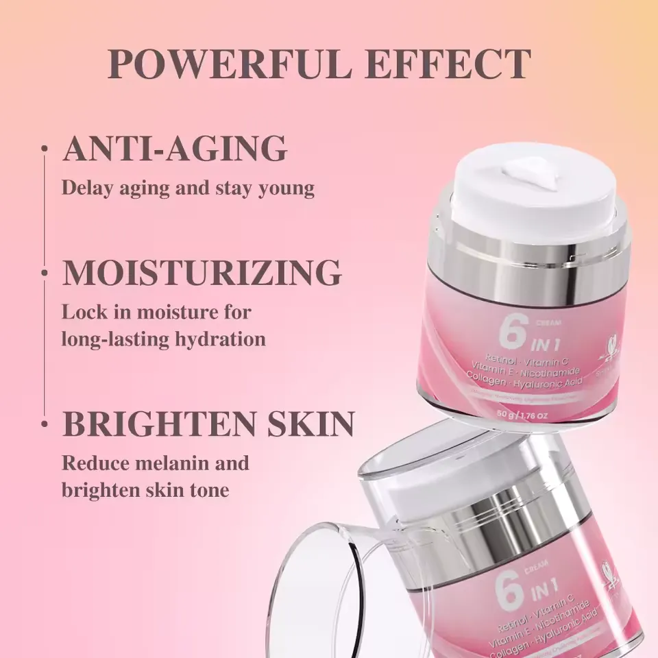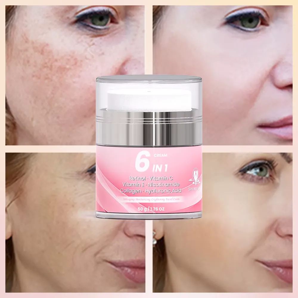 Soins de la peau 6 en 1 de marque privée Vitamine C E organique Blanchissant Collagène Rétinol Best Lift Crème anti-âge pour le visage