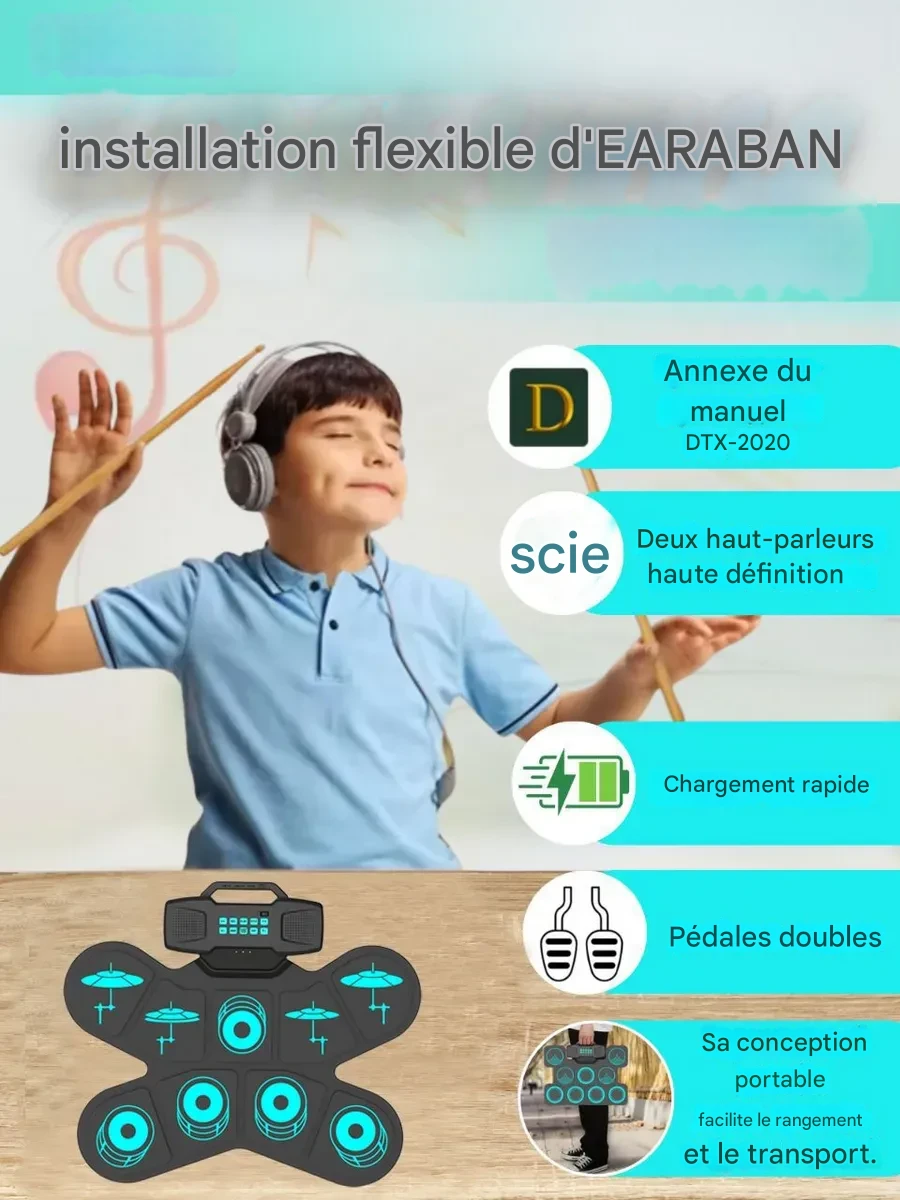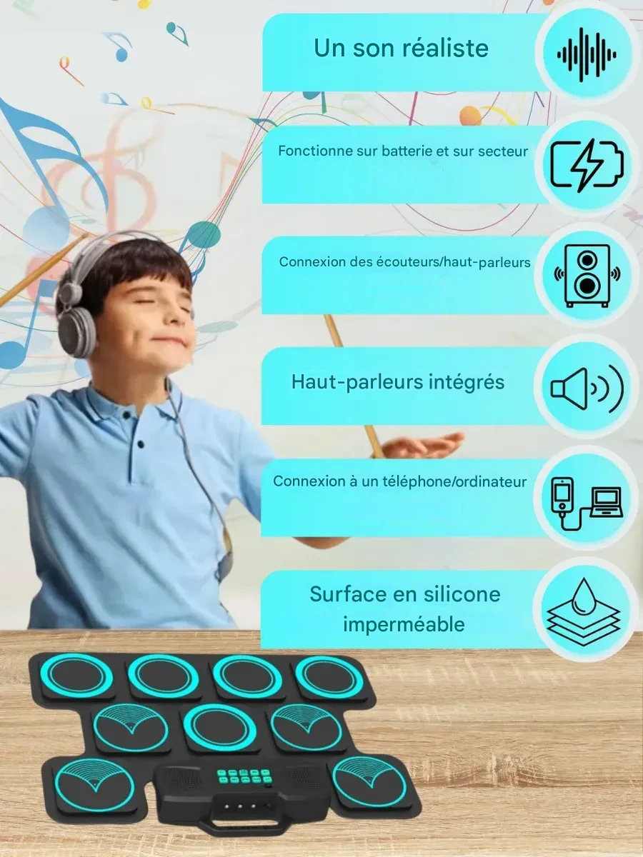 Oui, cette batterie électronique est parfaitement adaptée aux enfants à partir de 5 ans. Elle est simple à utiliser, légère et sécurisée.