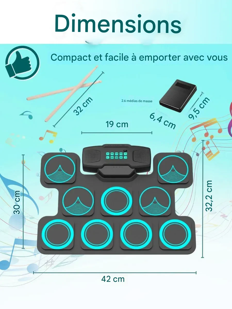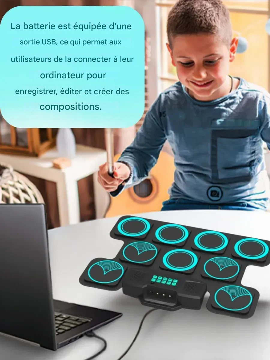 Drum Pad Électronique Portable avec Pédales