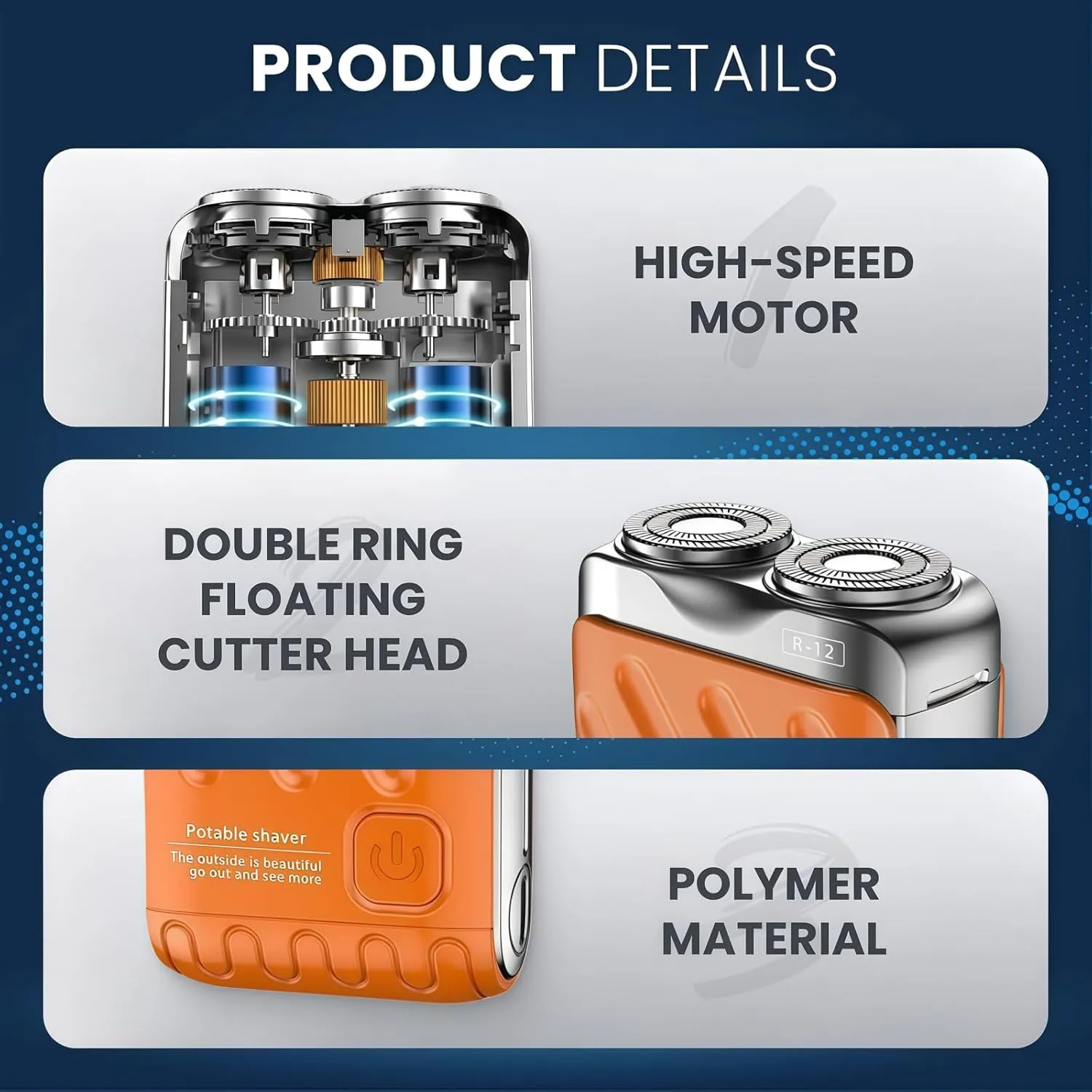 2025 New R-12 Luggage Electric Shaver, Portable Rotary Dual Ring Electric Shaver, Fully Waterproof Fast Charging Long Battery Life Double-Ring Magnetic Cutter for Home Travel (Orange)